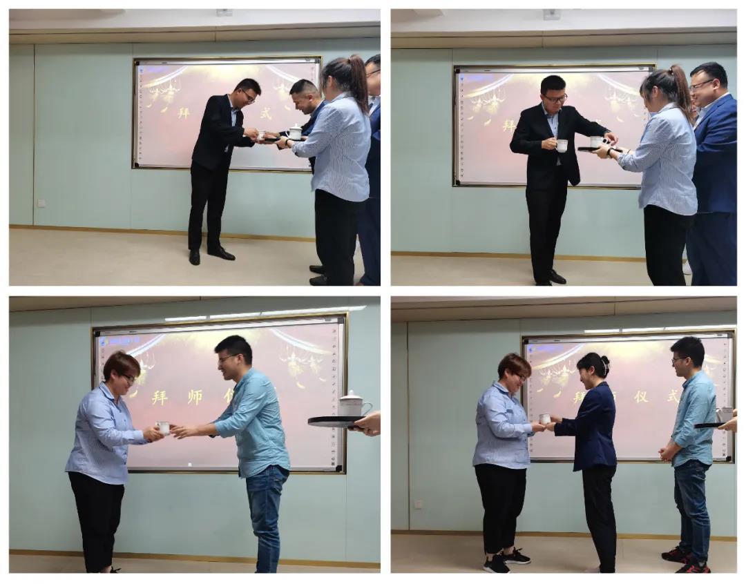 一杯拜師茶,一生師徒情,希望他們在工作中能互勉互敬,在思想上、教育上幫助他們成長,起到傳幫帶的作用。成為一生的良師益友。