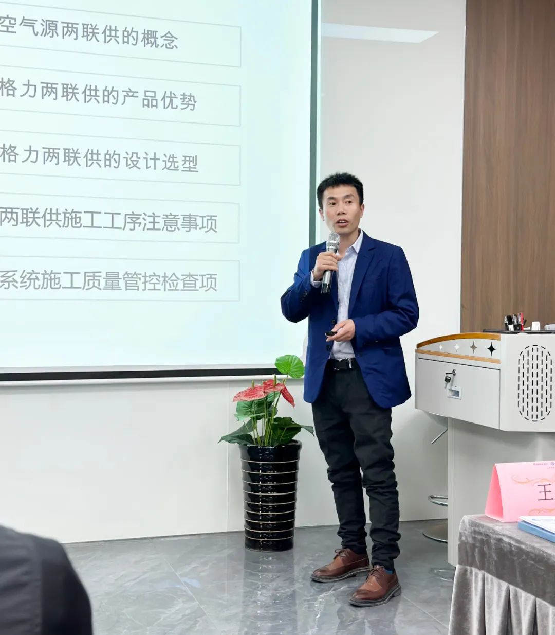 上海格力商用經(jīng)理賈琪先生首先對住宅健康系統(tǒng)所使用的產(chǎn)品進(jìn)行了詳細(xì)的培訓(xùn),然后對格力家裝節(jié)活動進(jìn)行了詳細(xì)的講解。此次活動以格力舒享家,健康新生活,為主旋律推出三大限量高端套餐智睿四房兩廳健康舒享套餐、Star三房兩廳智能舒享套餐、格力舒享家潤享三房兩廳地暖空調(diào)套餐和三款高性價比的爆款套餐,分別是:雅居/頤居三房一廳鉅惠套餐、雅居/頤居兩房一廳特惠套餐、風(fēng)管機優(yōu)選套餐。優(yōu)惠多多,歡迎大家選購!