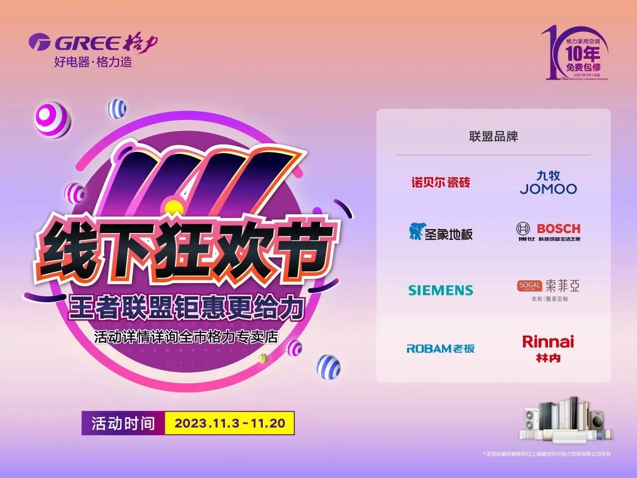 "格力11.11線(xiàn)下狂歡節(jié)”11月3日-20日重磅開(kāi)啟。