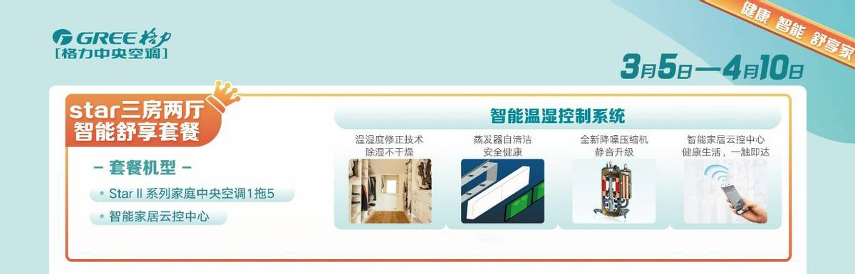 在本次格力“春季家裝節(jié)”活動中,格力特別推出了大戶型家庭的“starⅡ代 三室兩廳明星智能舒適套餐”自推出以來就備受關(guān)注。這個套餐適合大戶型三房兩廳的空間,該產(chǎn)品五重升級的主要功能與當前潮流的智能控制相匹配,可以充分滿足用戶對中央空調(diào)的嚴苛要求,以及同樣高檔裝修的適應(yīng)性和物業(yè)管理要求。格力“star 三房兩廳智能舒適套餐”主要包括:starⅡ代系列家用中央空調(diào)(1拖5)和智能家居云控中心,讓消費者全方位體驗智能舒適的居住環(huán)境。