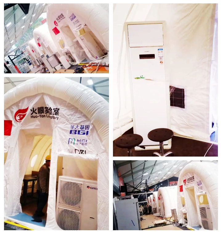 創(chuàng)延(野義)4月5日在接到項(xiàng)目指令以后,溝通上海格力領(lǐng)導(dǎo),得到了上海格力的大力支持,迅速完成了空調(diào)的出貨與安裝。4月6日下午5時(shí)許,擔(dān)援滬抗疫任務(wù)的氣膜版“火眼實(shí)驗(yàn)室”,在上海市普陀區(qū)搭建完成,并完成調(diào)試,迅速投入到核酸檢測(cè)的工作之中。