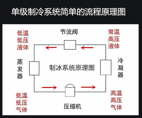 制冷設(shè)備根據(jù)系統(tǒng)的形式和制冷的種類,規(guī)模的大小,運用和選擇是不同的。這里以目前仍在常用的蒸汽壓縮式的冷庫制冷系統(tǒng)為例。蒸汽壓縮式的冷庫制冷系統(tǒng)的流程原理,仍是大家熟悉的四大過程,即:壓縮——冷凝——節(jié)流——蒸發(fā)。相應(yīng)的配套的主要設(shè)備是制冷壓縮機,冷凝器(風(fēng)冷式或水冷式),節(jié)流閥(氟制冷系統(tǒng)為熱力膨脹閥),蒸發(fā)器(冷庫常用的為直冷排管和風(fēng)冷式風(fēng)機)。