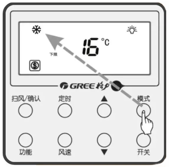 ②按“模式”鍵,切換至制冷或除濕模式。