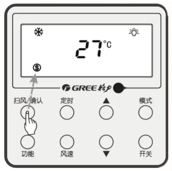 ④按“掃風(fēng)/確認(rèn)”鍵開啟節(jié)能功能。