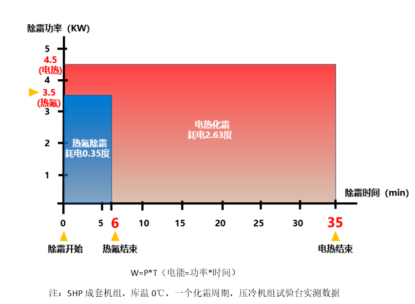 ①化霜功率下降了22.2% ②化霜時(shí)間縮短82.8% ③化霜的能耗降低了86.7%
