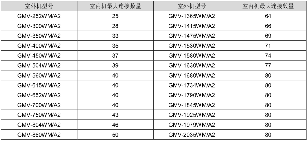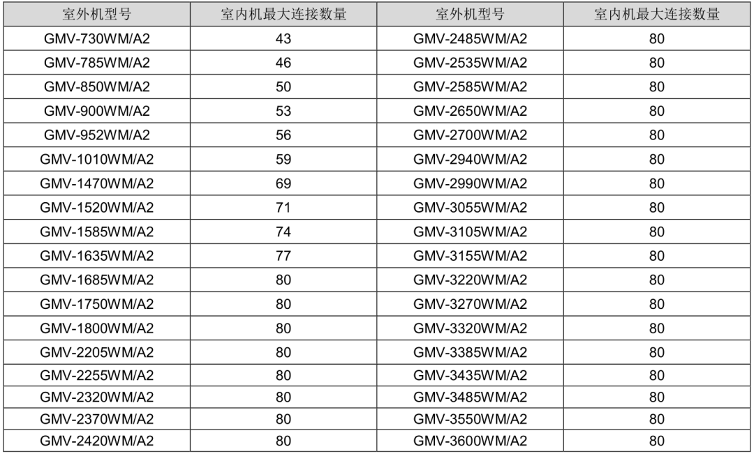 1. 格力六代模塊化多聯(lián)室外機(jī)所配室內(nèi)機(jī)數(shù)量,如下表所示: