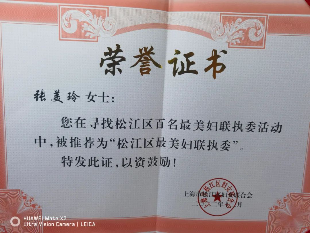 上海協(xié)格機(jī)電科技股份有限公司總經(jīng)理張美玲女士被評為2022年度“松江區(qū)zui美婦聯(lián)執(zhí)委”稱號!