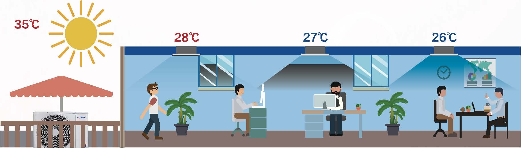 系統(tǒng)根據(jù)各個房間不同的室內(nèi)溫度