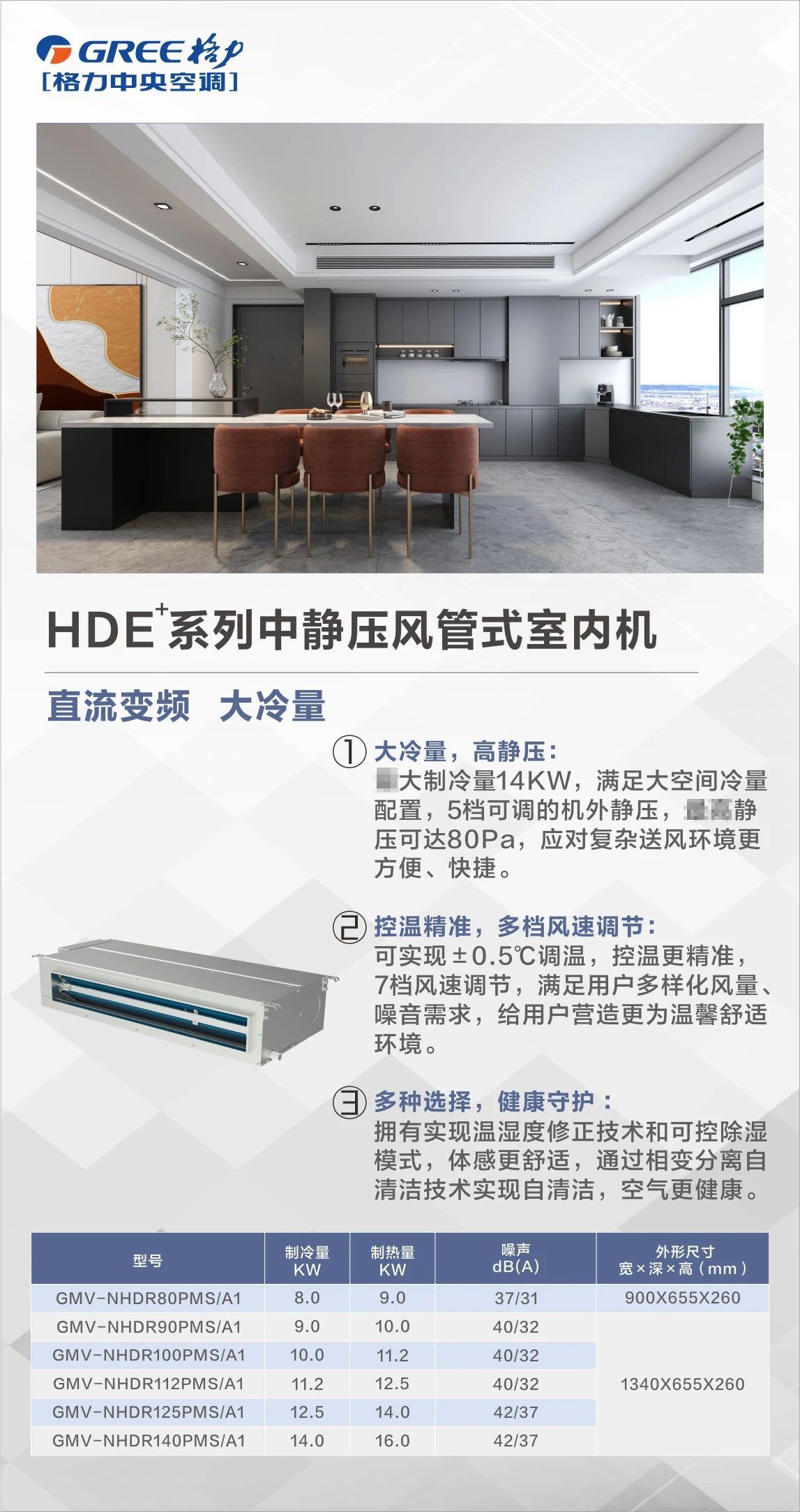 格力HDE+系列中靜壓風(fēng)管式室內(nèi)機