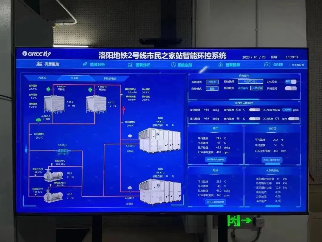 洛陽地鐵空調(diào)環(huán)控系統(tǒng)全部采用格力電器自主研發(fā)的磁懸浮直膨式地鐵車站智能通風(fēng)空調(diào)系統(tǒng),可以在保持穩(wěn)定運(yùn)行的同時(shí)實(shí)現(xiàn)*效節(jié)能。以洛陽地鐵的市民之家站為例,供冷季(7月25日-9月20日)系統(tǒng)總制冷量為143550kWh,系統(tǒng)總耗電量為23800kWh,機(jī)房冷站能效7.25,環(huán)控系統(tǒng)能效達(dá)到6.03。在為洛陽交通運(yùn)輸事業(yè)保駕護(hù)航的同時(shí),推動(dòng)加快行業(yè)整體節(jié)能降碳進(jìn)程。