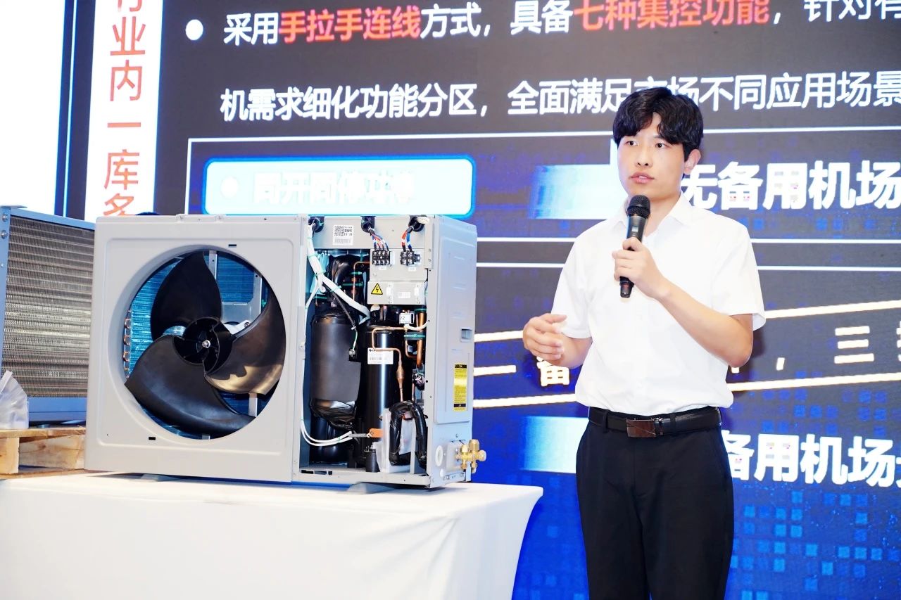 以格力自主研發(fā)的集成式智能熱氟融霜冷暖機(jī)組為例,該產(chǎn)品針對(duì)傳統(tǒng)電加熱化霜機(jī)組化霜時(shí)間長(zhǎng)、耗電量高、庫(kù)溫波動(dòng)大等問(wèn)題,創(chuàng)新研發(fā)智能熱氟融霜技術(shù),采用內(nèi)外機(jī)成套化設(shè)計(jì),實(shí)現(xiàn)了化霜效率大幅提高、智能控制更加精準(zhǔn)、運(yùn)行更加穩(wěn)定、節(jié)能環(huán)保更加顯著、安裝維護(hù)更加便捷等優(yōu)勢(shì)。針對(duì)不同行業(yè)、不同的應(yīng)用場(chǎng)景,格力憑借深厚的技術(shù)底蘊(yùn)和持續(xù)不斷的創(chuàng)新實(shí)踐,打造穩(wěn)定、綠色的定制化解決方案,解決現(xiàn)實(shí)商業(yè)活動(dòng)中對(duì)產(chǎn)品從儲(chǔ)存、運(yùn)輸?shù)搅闶鄣热滏湹碾y題。會(huì)上,珠海格力商用中央空調(diào)經(jīng)營(yíng)部產(chǎn)品工程師張?zhí)昧譃榇蠹以敿?xì)介紹了格力冷凍冷藏系統(tǒng)解決方案,并進(jìn)行了實(shí)機(jī)拆機(jī)展示。