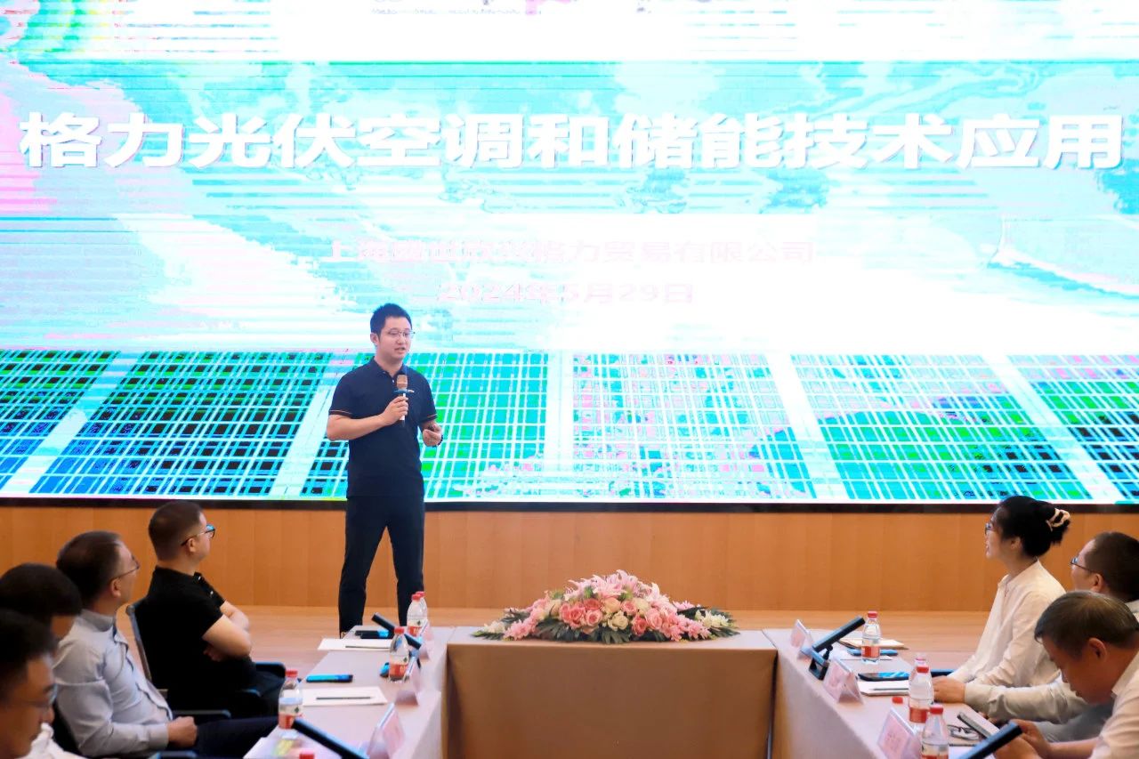 上海格力商用部朱雄楓先生現(xiàn)場講解了格力光伏空調(diào),格力開創(chuàng)性的將光伏、儲能與空調(diào)跨界融合,形成全新的分布式發(fā)儲用電一體應(yīng)用模式,從遠景目標到行業(yè)升級發(fā)展再到解決客戶痛點,光儲空調(diào)系統(tǒng)迎來好的發(fā)展契機。