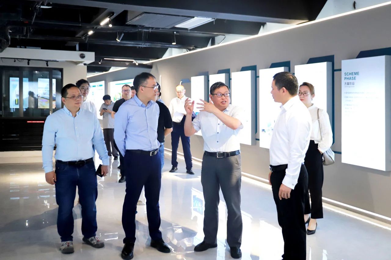 珠海格力電器股份有限公司商用空調(diào)經(jīng)營部部長曹勇先生、上海格力總經(jīng)理賴天榮先生一行現(xiàn)場由上?,F(xiàn)代建筑科技館館長全先國先生、上?,F(xiàn)代建筑科技館推廣部總經(jīng)理李富榮先生陪同參觀了上海數(shù)字建筑展示館。