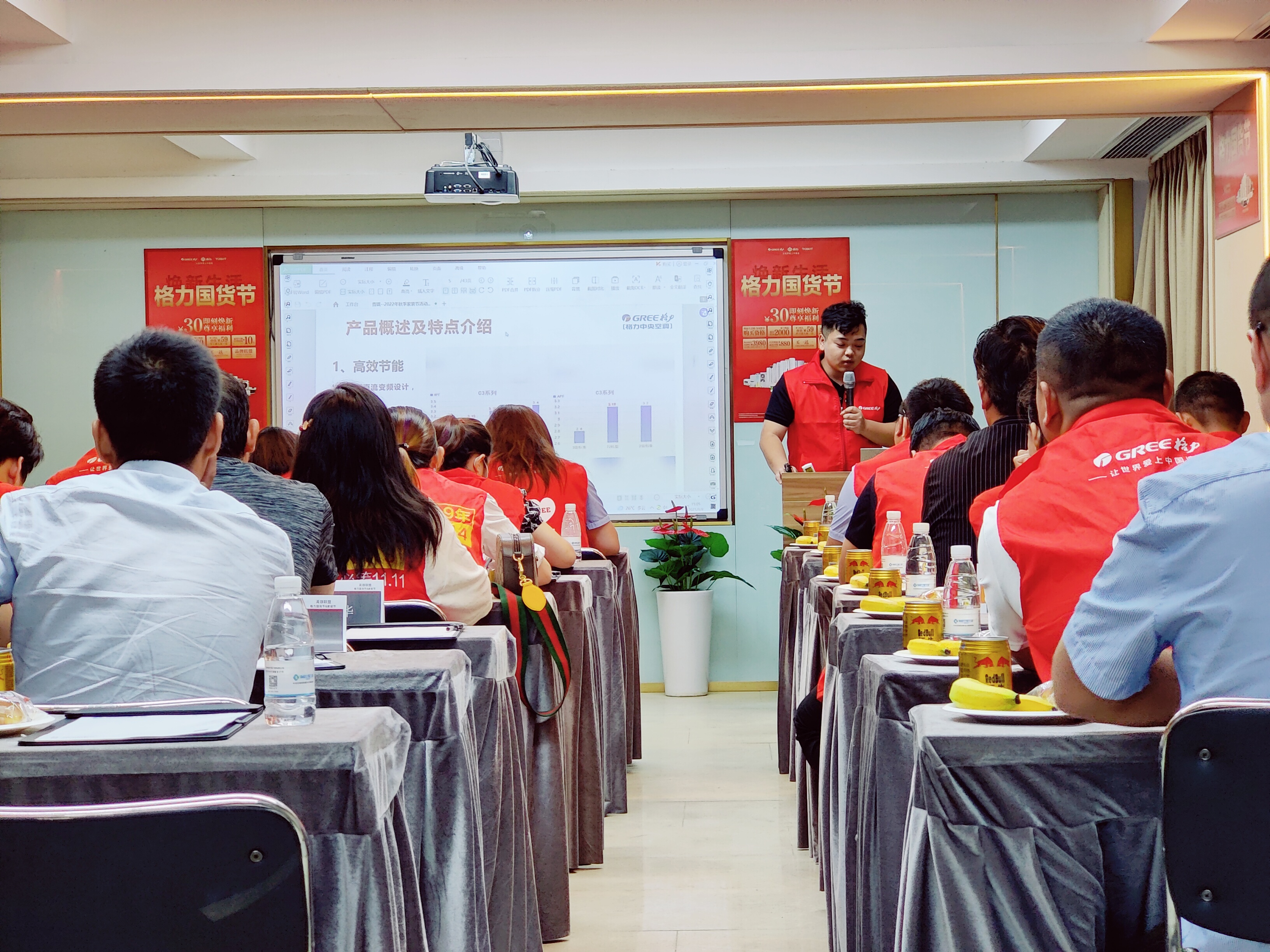 現(xiàn)場由格力商用部經(jīng)理賈琪先生講解了商用“秋季家裝節(jié)”活動。本次活動9月10日-10月10日正式開啟,多款健康節(jié)能的產(chǎn)品搭配鉅惠套餐誠意亮相。隨著綠色健康生活的理念日漸深入人心,消費者對暖通設備的要求也提高到穩(wěn)定、舒適健康、節(jié)能環(huán)保等新高度。格力中央空調(diào)已成為眾多消費者的節(jié)能健康選擇。