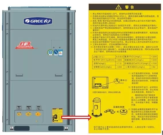 具體排水操作可以查看機(jī)組使用說明書或者機(jī)組面板粘貼的警告標(biāo)識。