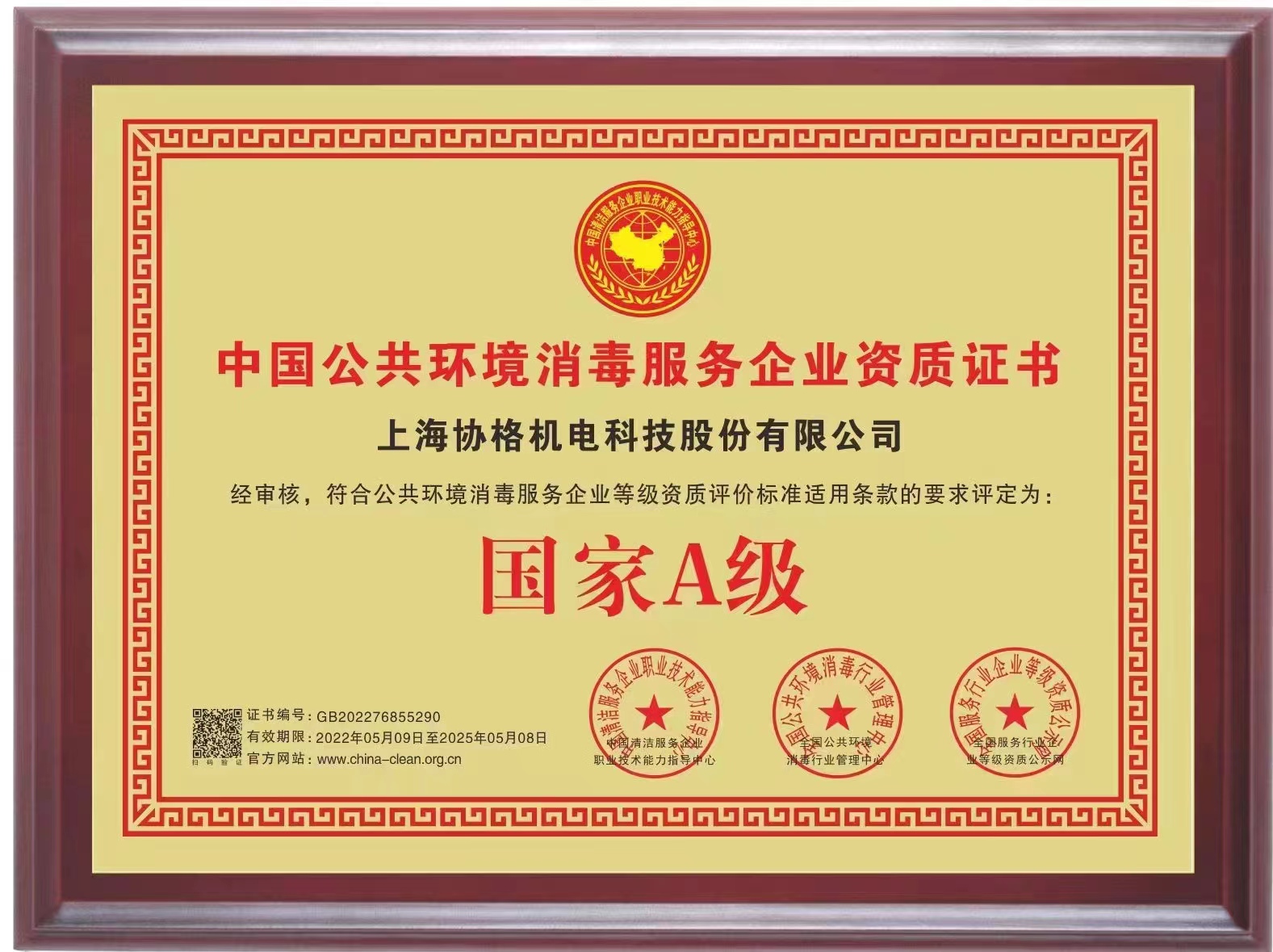 中國公共環(huán)境消毒服務(wù)企業(yè)資質(zhì)證書