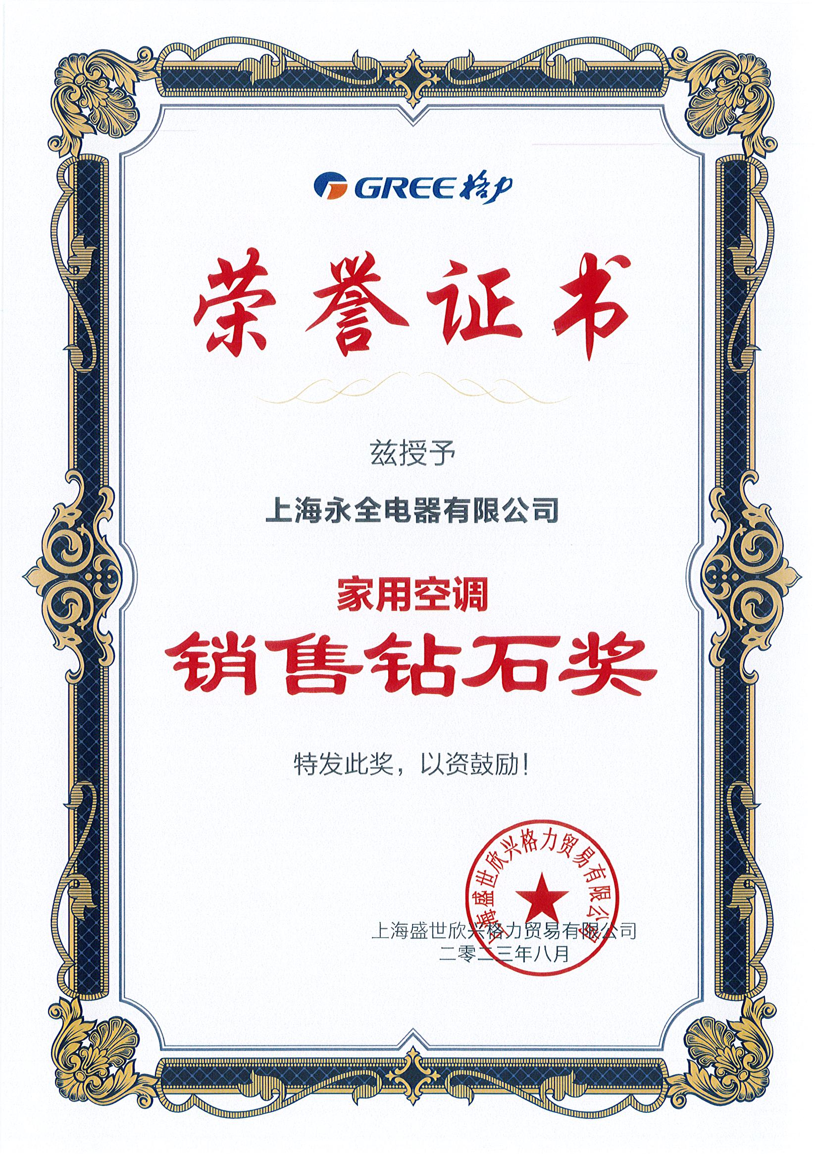 格力家用空調(diào)銷售鉆石獎(jiǎng)