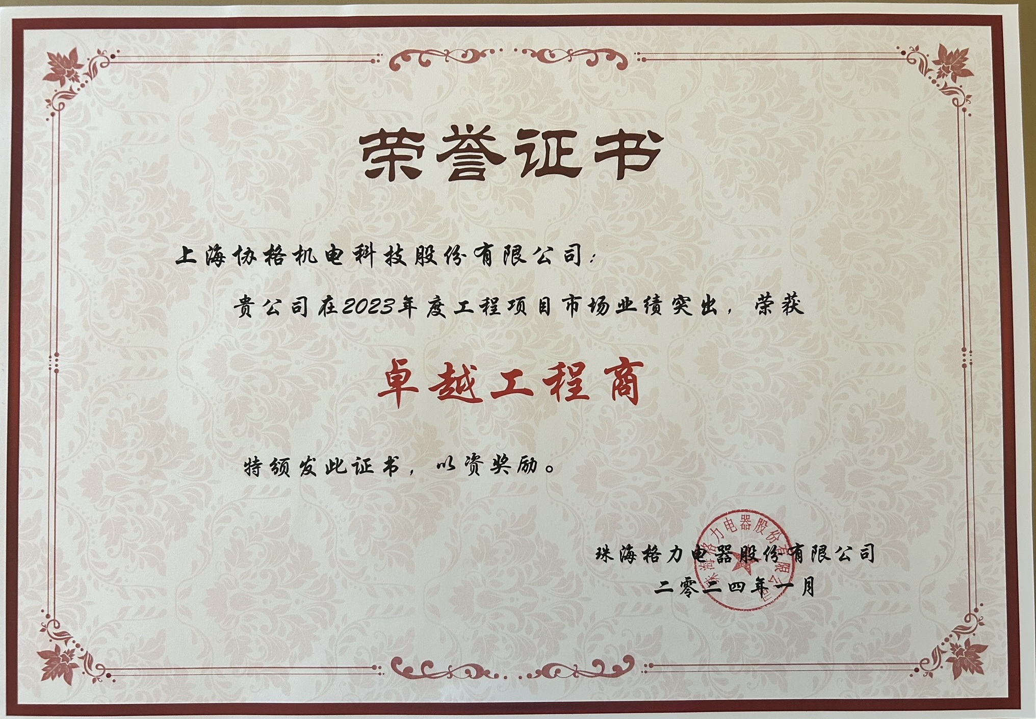 2024年度格力政府采購卓越工程商