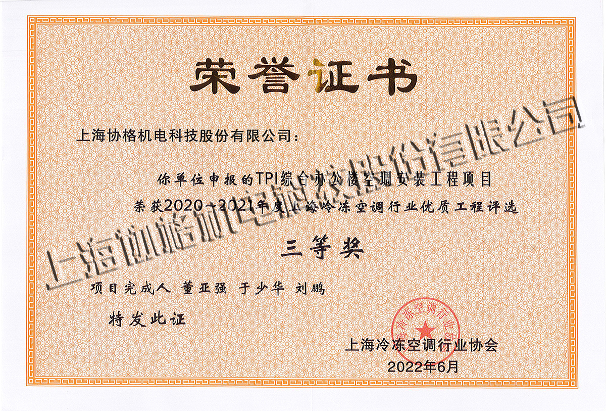 TPI綜合辦公樓空調(diào)安裝工程項(xiàng)目三等獎(jiǎng)