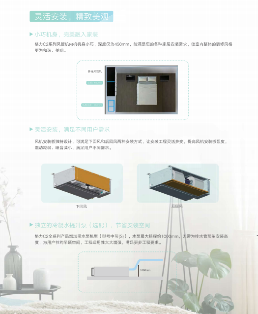 格力 C2 系列靜音風(fēng)管送風(fēng)式空調(diào)機(jī)組,容量范圍為2.6kw~7.2kw,采用靜音型風(fēng)機(jī),實(shí)現(xiàn)超靜音運(yùn)行,營(yíng)造舒適的家居環(huán)境。小巧袖珍型室內(nèi)機(jī)設(shè)計(jì)可全面融入室內(nèi)裝潢,隱藏式安裝,為不同空間創(chuàng)造出同樣優(yōu)雅和諧的環(huán)境,可廣泛適用于家庭,賓館,酒店,餐廳,辦公室,會(huì)議室等。