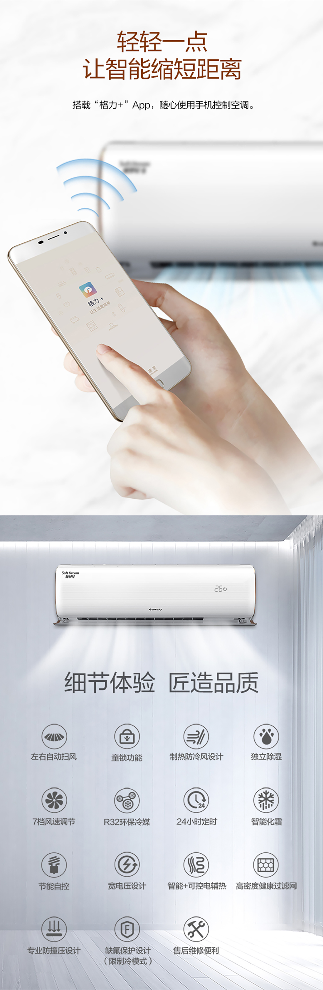 格力睡眠空調(diào),創(chuàng)新睡眠科技,集成4大技術(shù),拒絕聲、光干擾,營造衡溫不擾眠的舒適睡眠環(huán)境,舒睡一整晚。