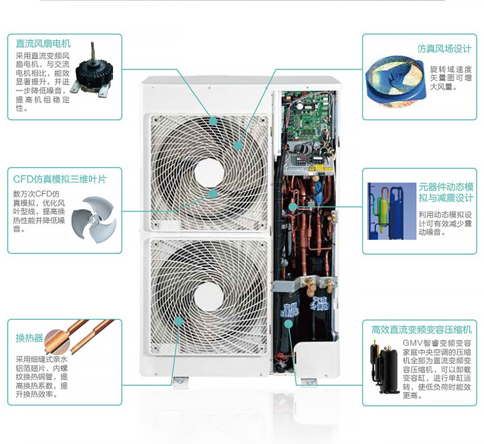 GMV 智睿 變頻變?nèi)菁彝ブ醒肟照{(diào)是格力自主研發(fā)的新一代變頻空調(diào)機(jī)組。機(jī)組采用直流變頻+變?nèi)輭嚎s機(jī),能力輸出范圍廣,低負(fù)荷能效高,相比于普通多聯(lián)機(jī)更舒適,更節(jié)能。