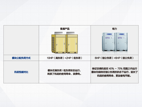 空調(diào)在40%~75%負(fù)荷運(yùn)行時(shí),耗電量低,GMV5能智能分配各模塊輸出能力,運(yùn)行負(fù)荷超過75%時(shí),自動(dòng)增加一臺(tái)模塊運(yùn)行;負(fù)荷低于40%時(shí)自動(dòng)關(guān)閉一臺(tái)模塊,可大大延長機(jī)組壽命,時(shí)刻保持低耗電運(yùn)行。