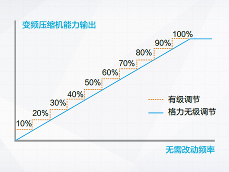 輸出能力無級(jí)調(diào)節(jié),直流變頻壓縮機(jī)能夠在20Hz~120Hz范圍內(nèi)做到數(shù)字化無級(jí)能量調(diào)節(jié)。