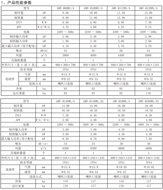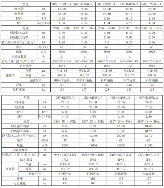 GMV Star家庭中央空調(diào)機(jī)組,容量范圍為8.0~33.5kw
