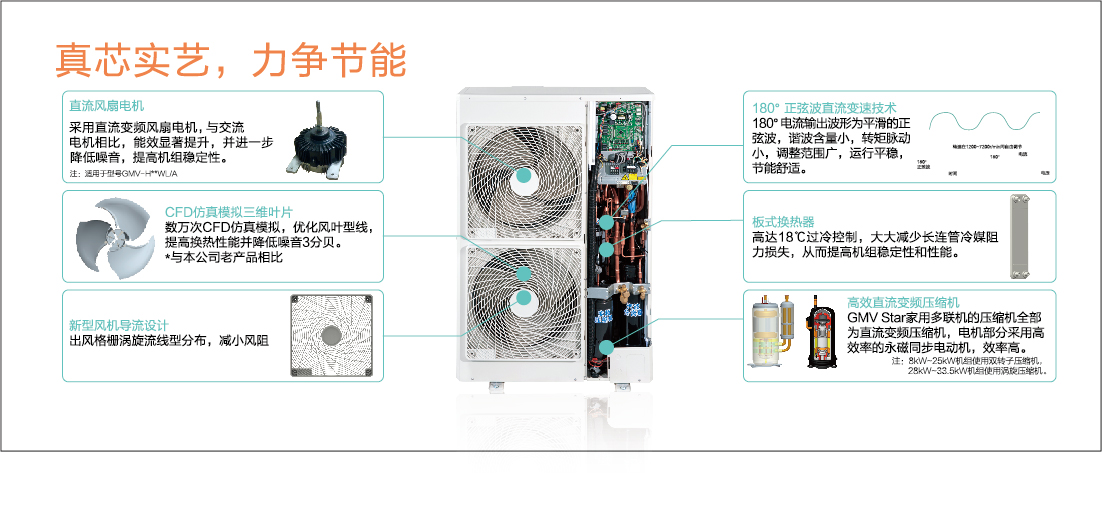 GMV Star家庭中央空調(diào)機(jī)組 是格力自主研發(fā)的新一代變頻空調(diào)機(jī)組,機(jī)組容量范圍為8.0~33.5kw,主要用于家居場所、別墅、小型辦公樓等,機(jī)組采用直流變頻壓縮機(jī),并優(yōu)化了制冷系統(tǒng),使性能更佳、能效比更高、運(yùn)行更為可靠,安裝調(diào)試更為方便。