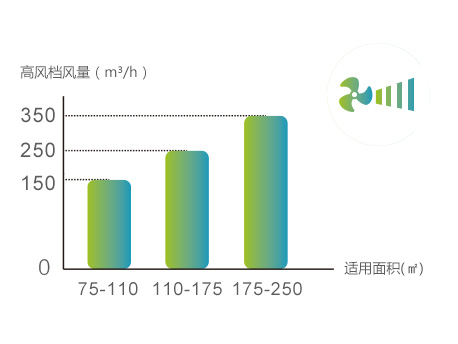 機(jī)組設(shè)有低、中、高、強(qiáng)四檔,滿足不同住宅面積和不同接管尺寸下新風(fēng)需求。