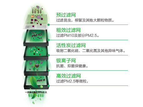 過濾網(wǎng)前增加了銀離子網(wǎng),具有抗菌、抑菌和保護(hù)過濾網(wǎng)的作用。