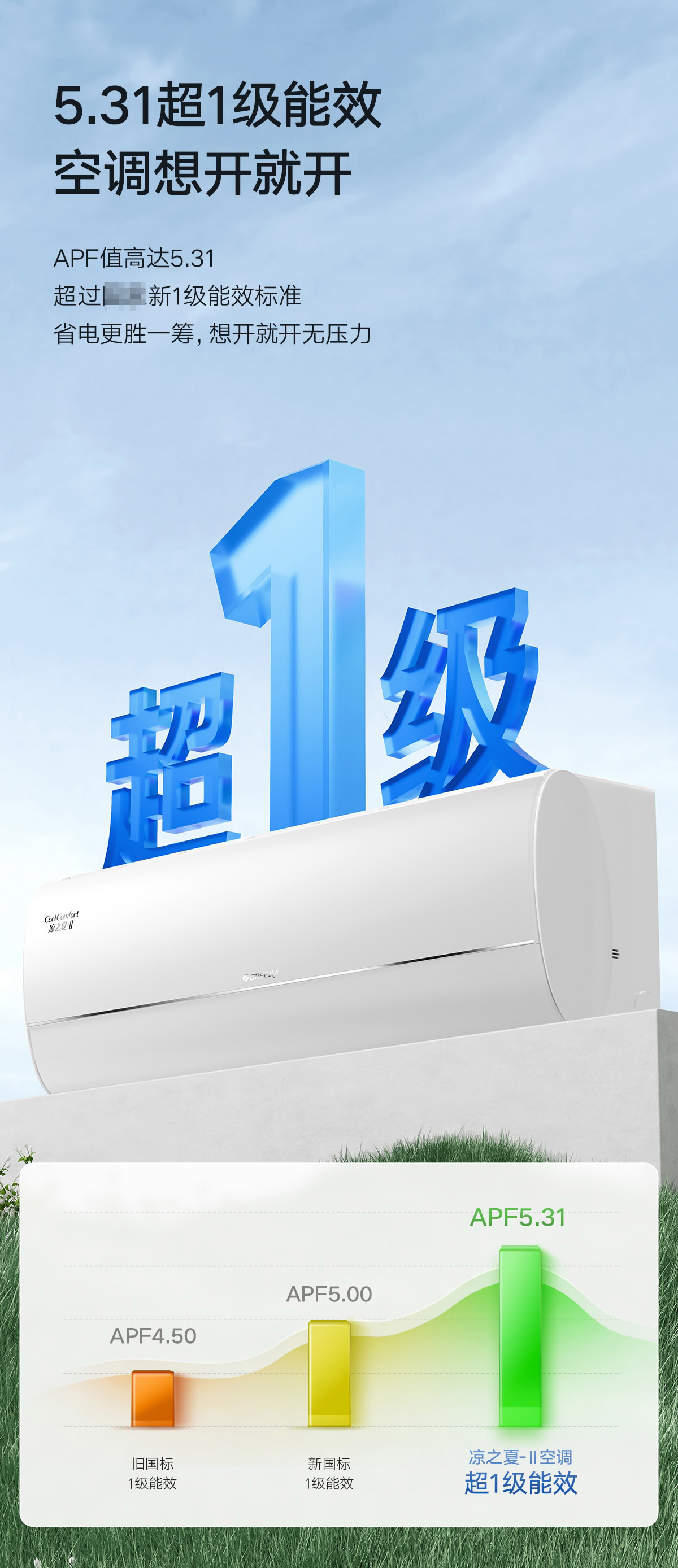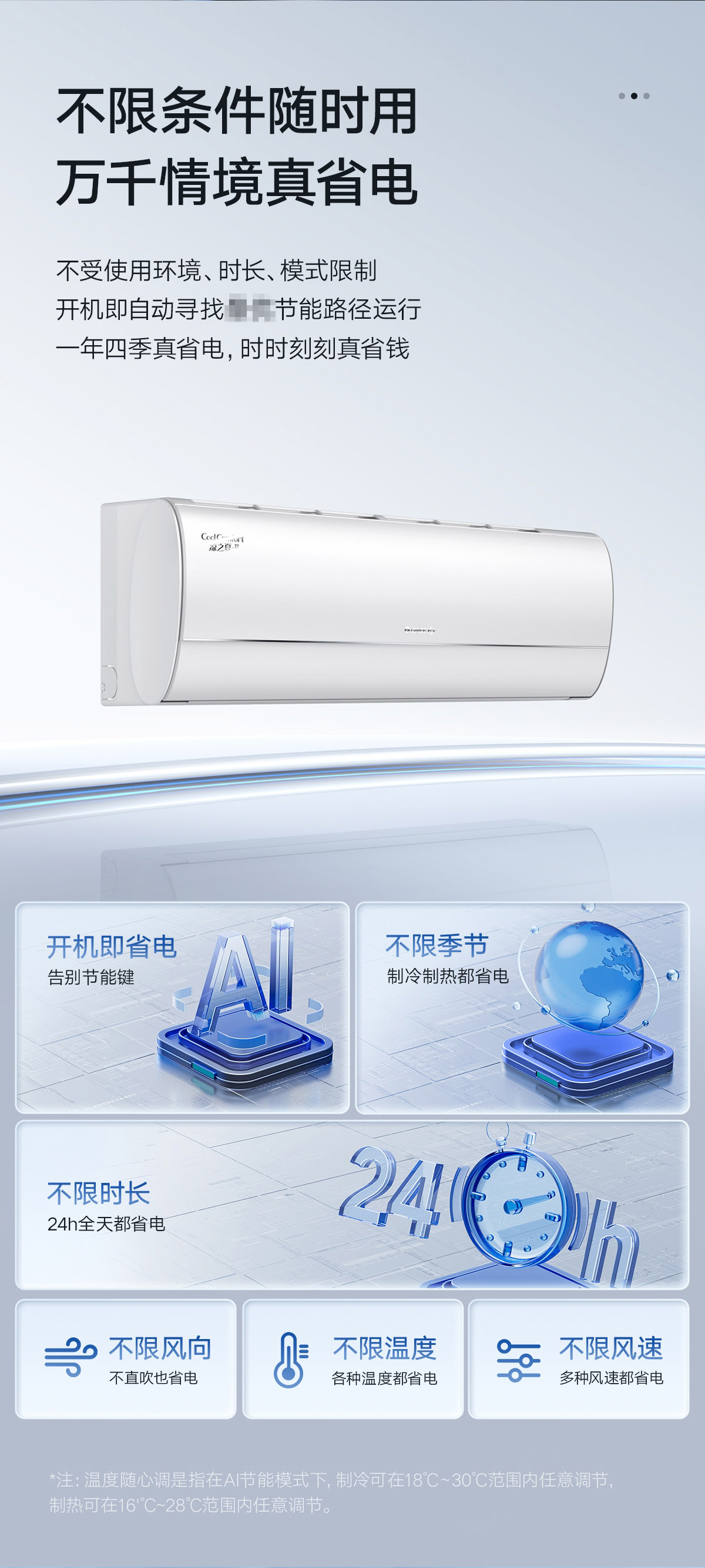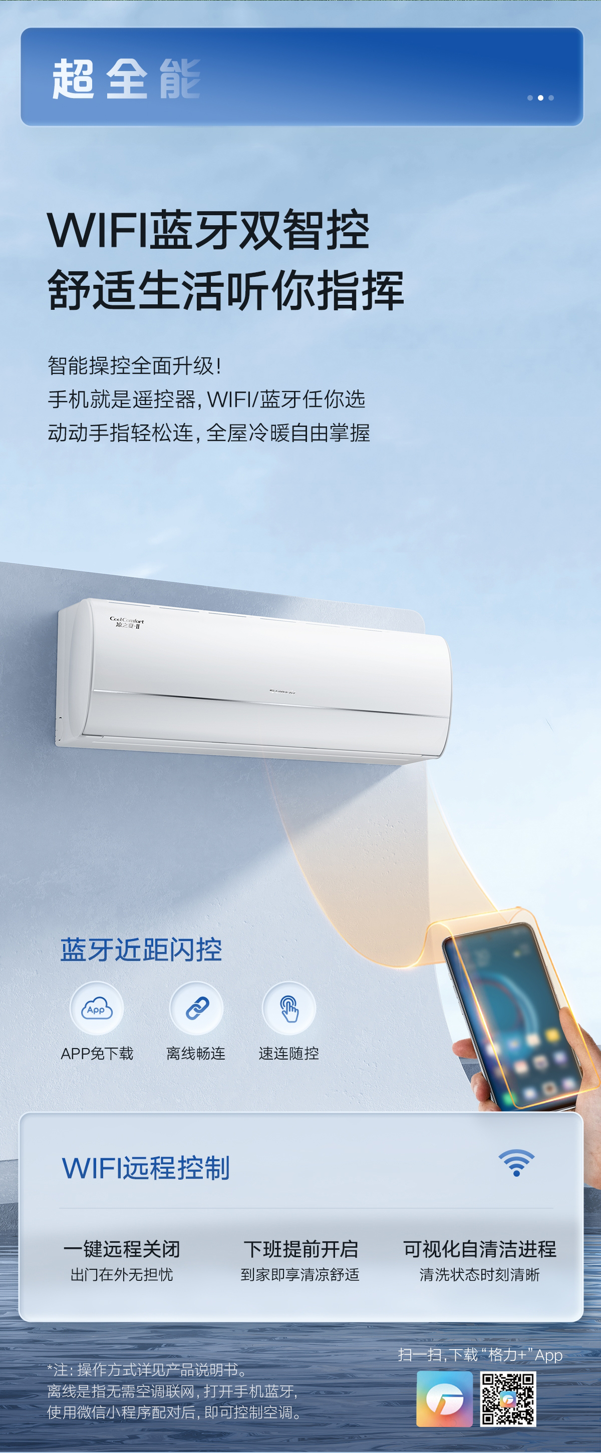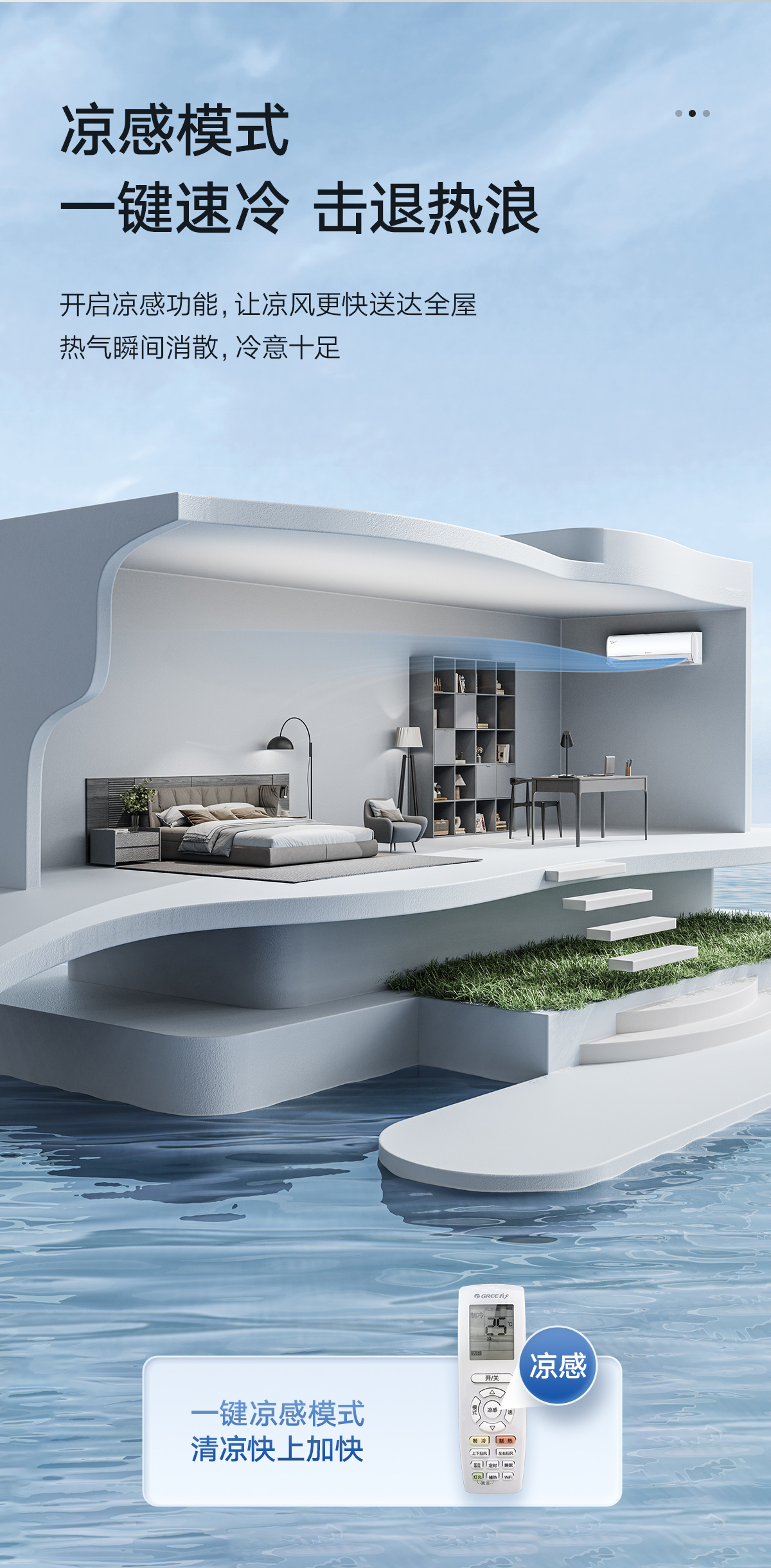 格力涼之夏-Ⅱ掛機(jī),全新升級(jí),新一代。澎湃風(fēng)量,清涼不等待。搭載運(yùn)動(dòng)子母導(dǎo)風(fēng)板,冷風(fēng)不吹人,全域有涼感。更有AI動(dòng)態(tài)節(jié)能科技。