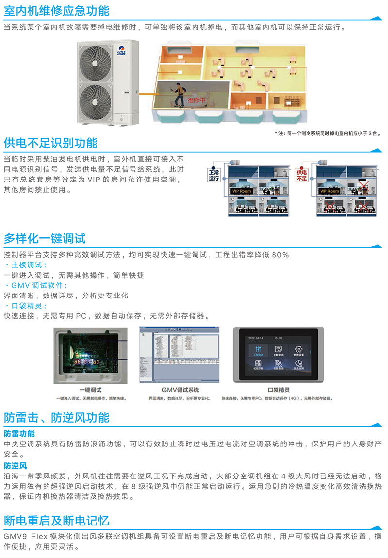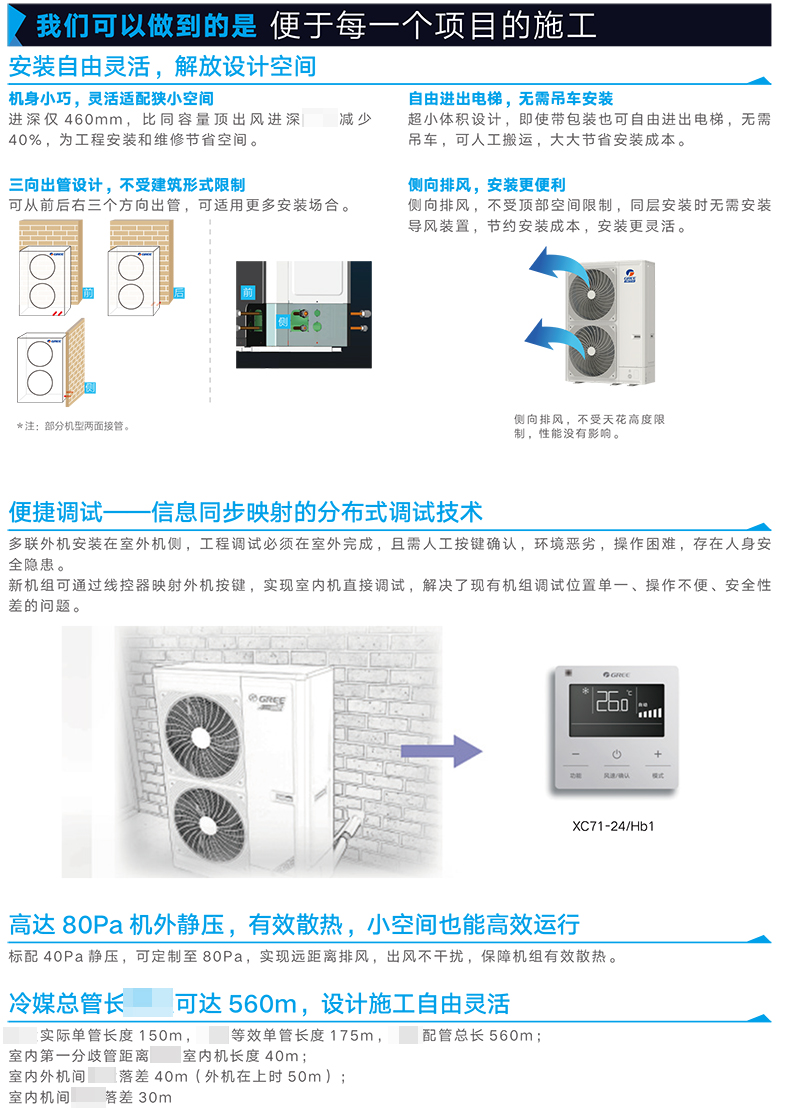 格力GMV9 Flex模塊化側(cè)出風(fēng)多聯(lián)空調(diào)中央空調(diào)機(jī)組基礎(chǔ)模塊容量 14~24HP,產(chǎn)品最大可 4 臺模塊組合,組合容量范圍 28~96HP,產(chǎn)品線更加豐富,用戶選擇更加靈活。建筑面積不大,客戶流量較分散,但是對舒適性及噪音的要求較高,需要借助空調(diào)營造一個氣溫舒適宜人的營業(yè)氛圍,提升商鋪檔次。